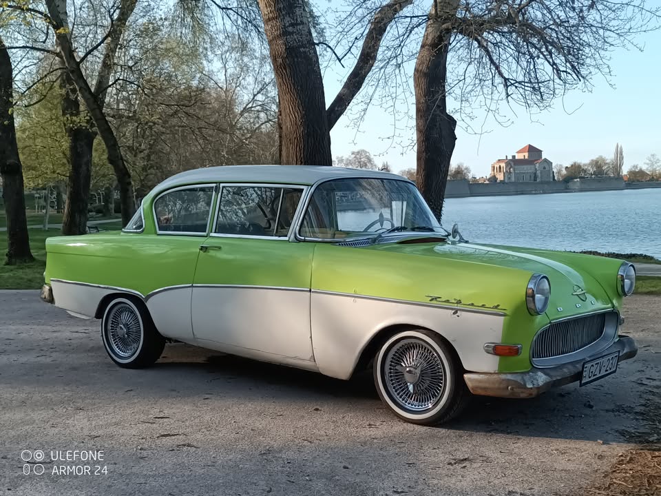 Talán egy mérnök, talán egy orvos, talán valaki, aki hosszú várakozás után jutott hozzá egy ilyen autóhoz. Az 1950-es évek végén egy Opel nem volt hétköznapi látvány Magyarországon.